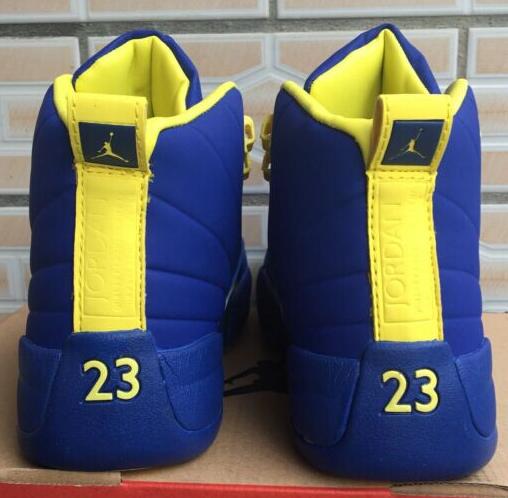 The panther-inspired New Air Jordan 12 & Jordan xii Retro Obsidian/White French Blue University Blue, featuring a cat eye hologram on the side, was worn during Michael Jordan's last run to the playoffs. Released in 1997, the Air Jordan XII became known for its supreme cushioning and breathability. Tinker Hatfield drew inspiration for the XII's from the sleek black panther because he thought that Jordan played defense like the stealthy panther. Jordan would read his player, and then strike. The shoe's outsole resembles the pads on a panther's paw. Also, the upper is pitted just like a panther's cheeks from its whiskers. The final queue from the panther is the hologram on the back of the shoe, which imitates a panther's eyes in the dark.