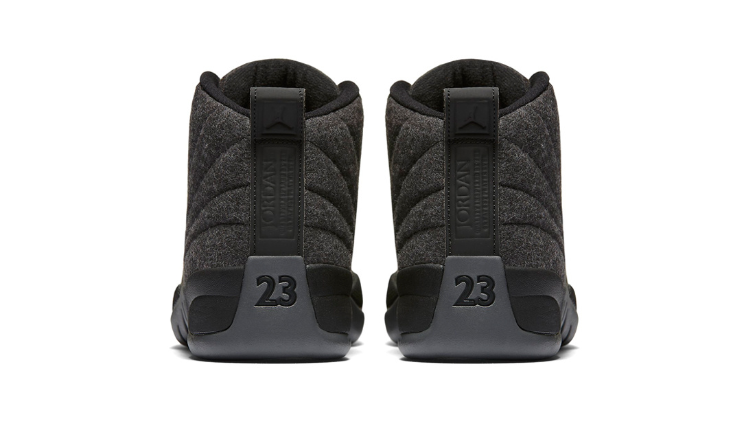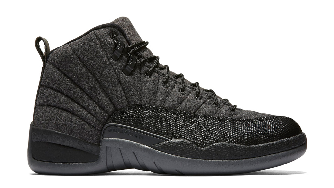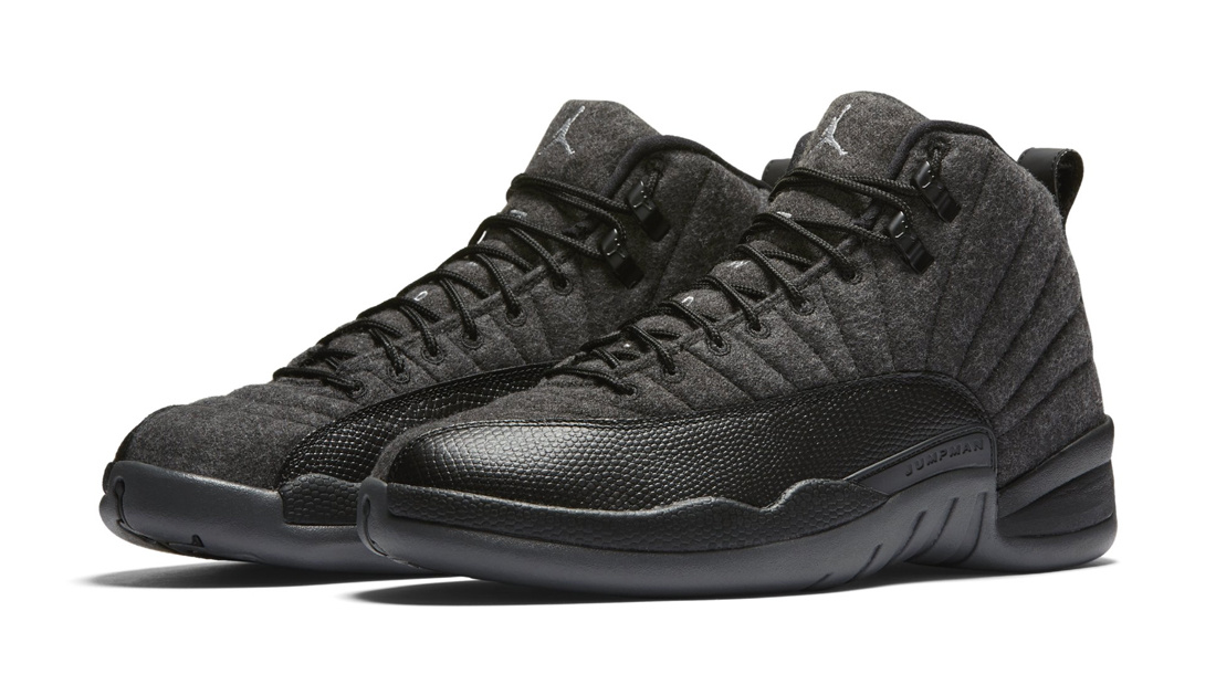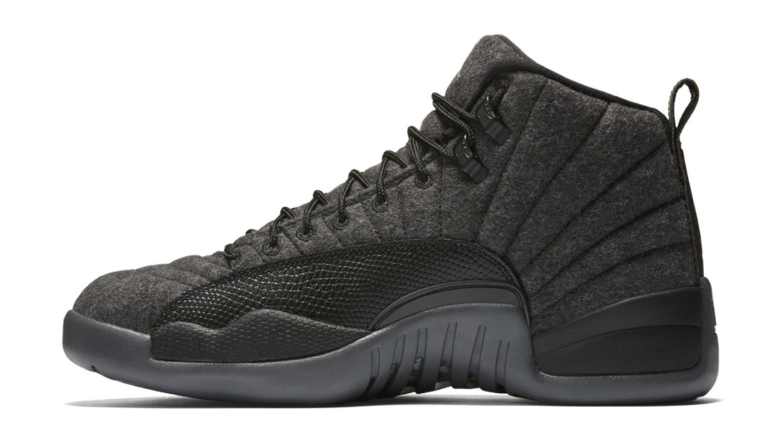 The Air Jordan 12 gets a winter-ready makeover with the release of the Air Jordan 12 Retro Wool. The sneaker features a dark grey wool and basketball textured leather upper sitting on a black sole and grey outsole with metallic silver accents.